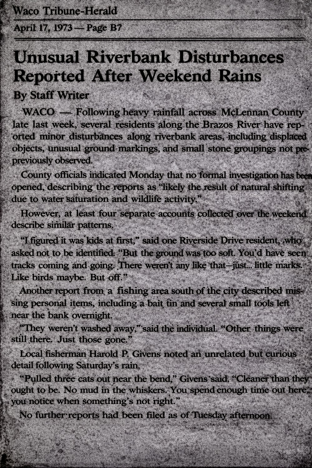 Their presence seems tied, in some way not yet fully understood, to periods of sustained rainfall along the Brazos River and surrounding lowlands of McLennan County.